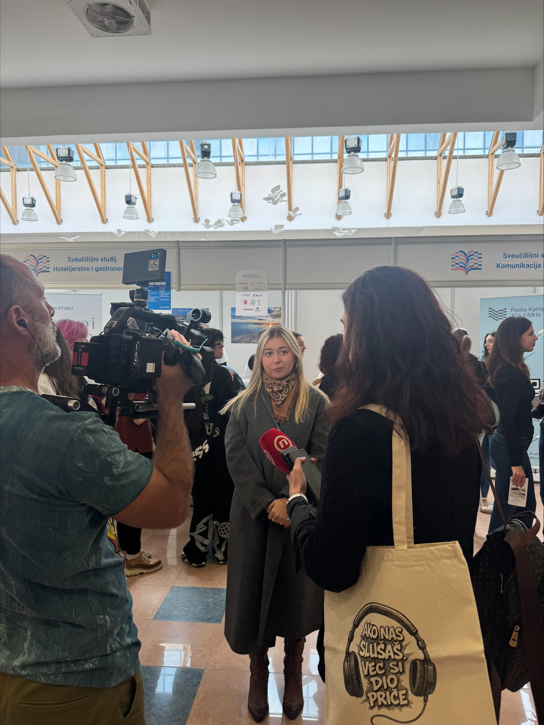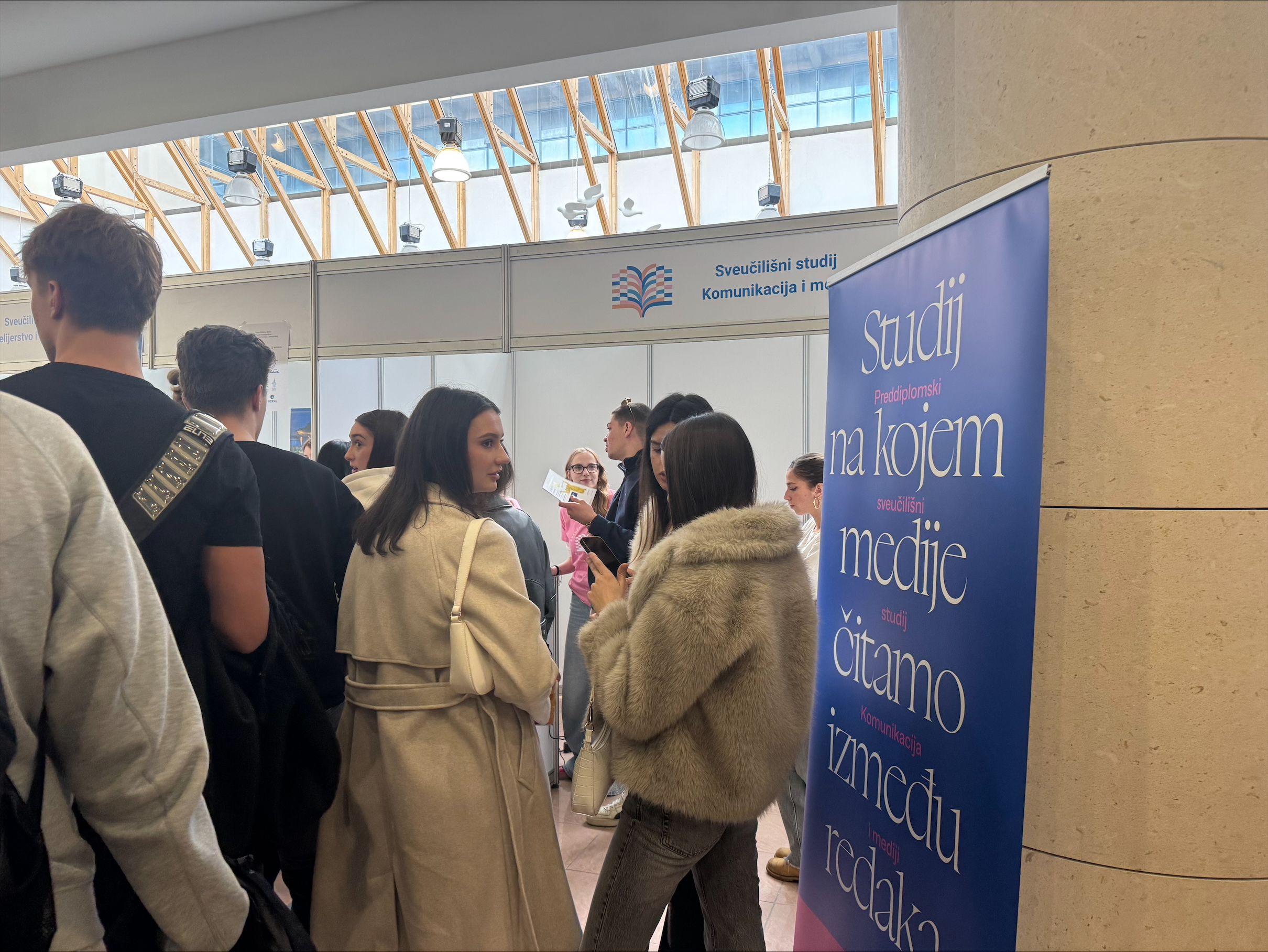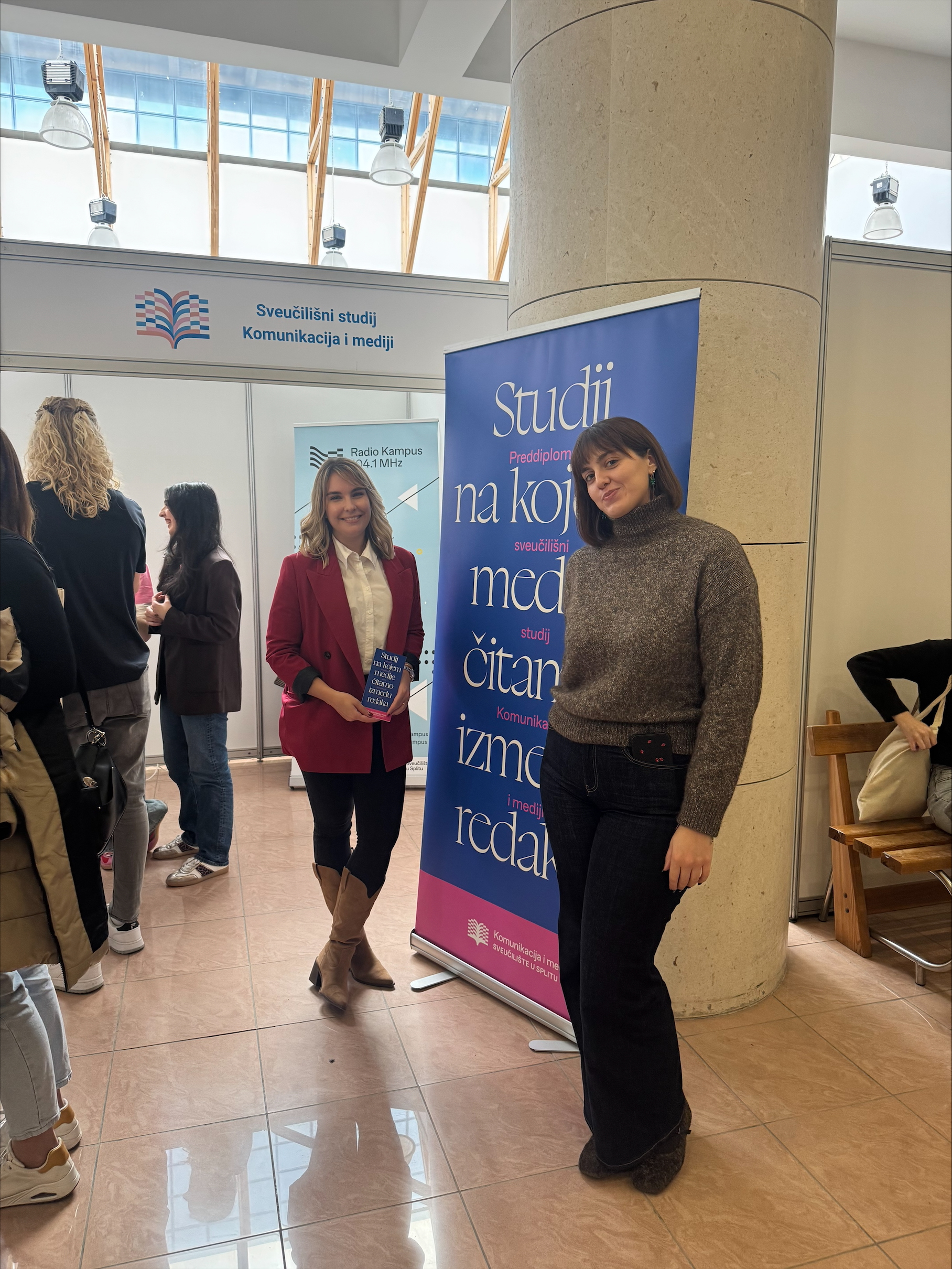Smotra Sveučilišta u Splitu započela je u ponedjeljak, a naš studij Komunikacija i mediji već je prvog dana privukao izniman interes posjetitelja. Na našem su informacijskom štandu profesori/ce predstavili studij i projekte, uz podršku studenata/ica koji su podijelili svoja iskustva iz prve ruke. Veseli nas što smo imali priliku razgovarati s tolikim brojem motiviranih maturanata/ica. Pozivamo vas da nam se pridružite i na službenom predstavljanju studija u petak u 18 sati u Zgradi tri fakulteta. Radujemo se susretu!